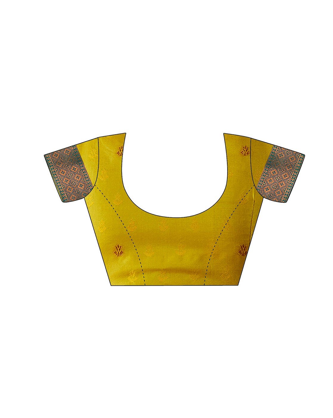• The last image gives a detailed look of the blouse piece that comes with this saree (The model is wearing a blouse from our in-house wardrobe)